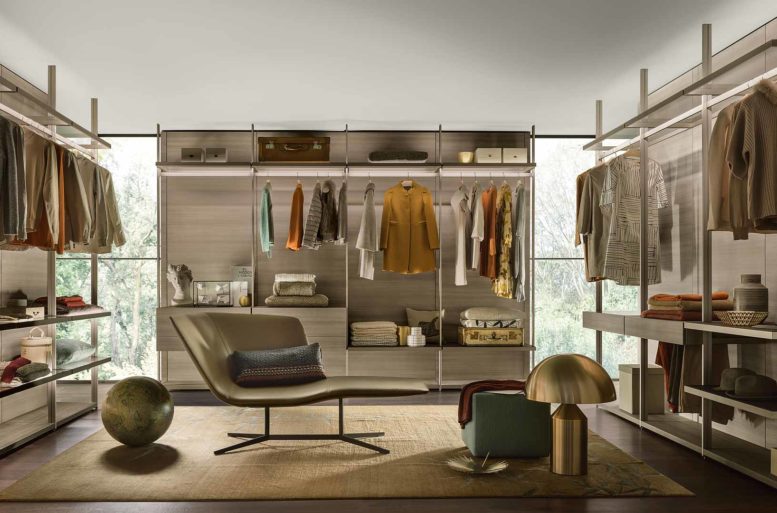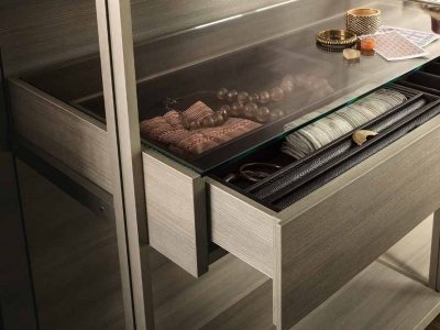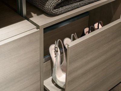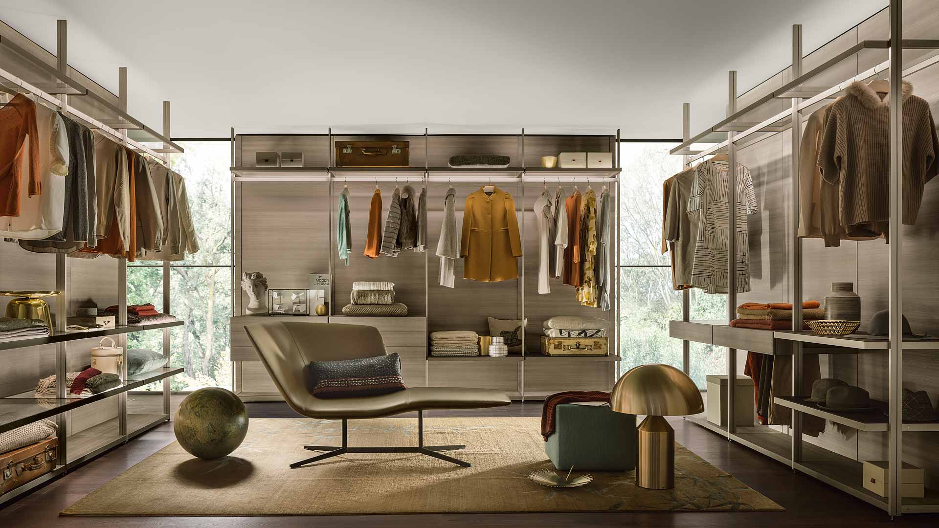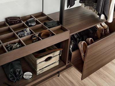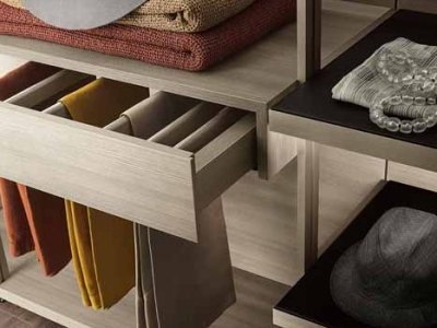 Adattabile a misura in altezza e profondità, disponibile anche per allestimenti angolari, si caratterizza per le ricchissime attrezzature interne che offrono molteplici combinazioni per sfruttare al meglio lo spazio e declinarsi a ogni esigenza di ordine: cassettiere, porta pantaloni, porta cinture, porta scarpe.