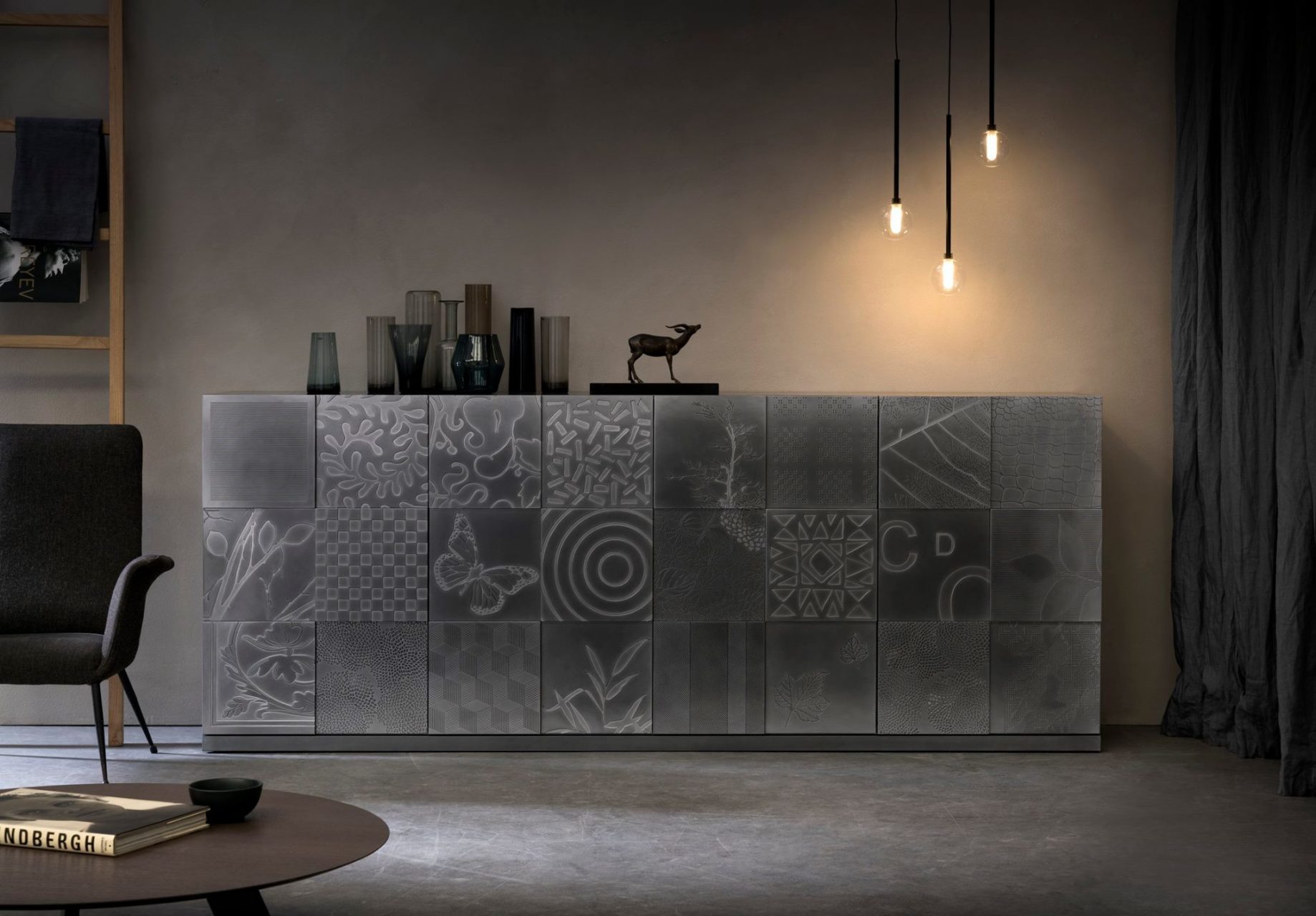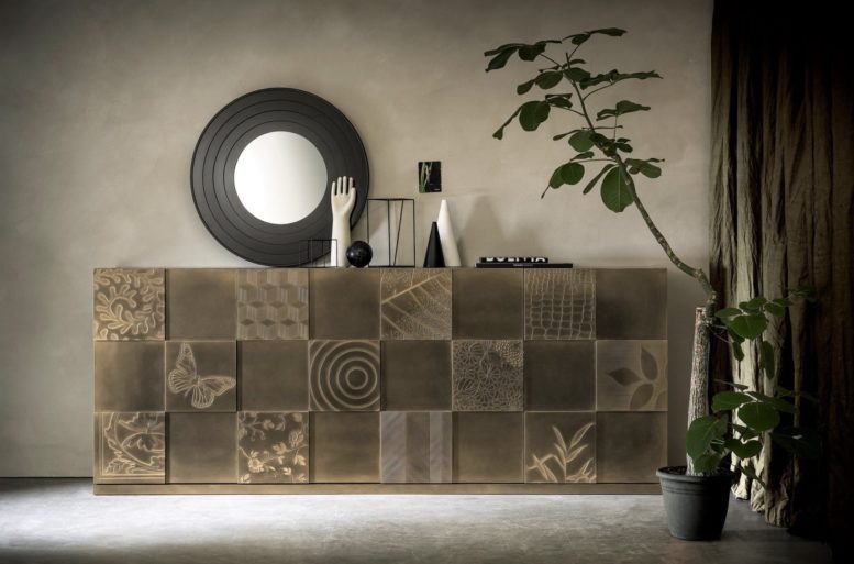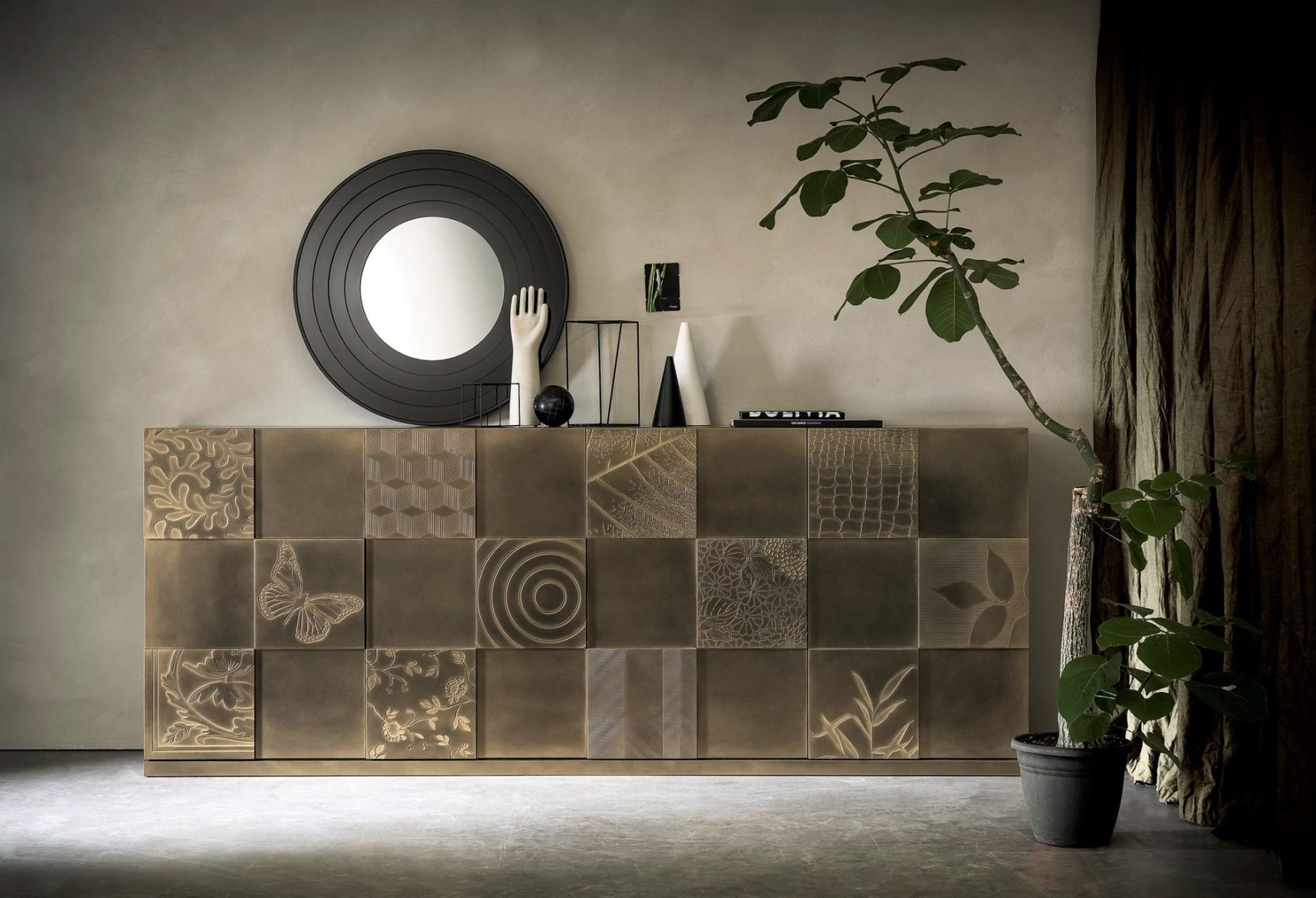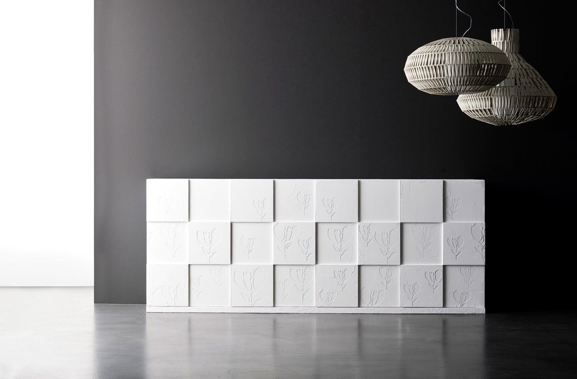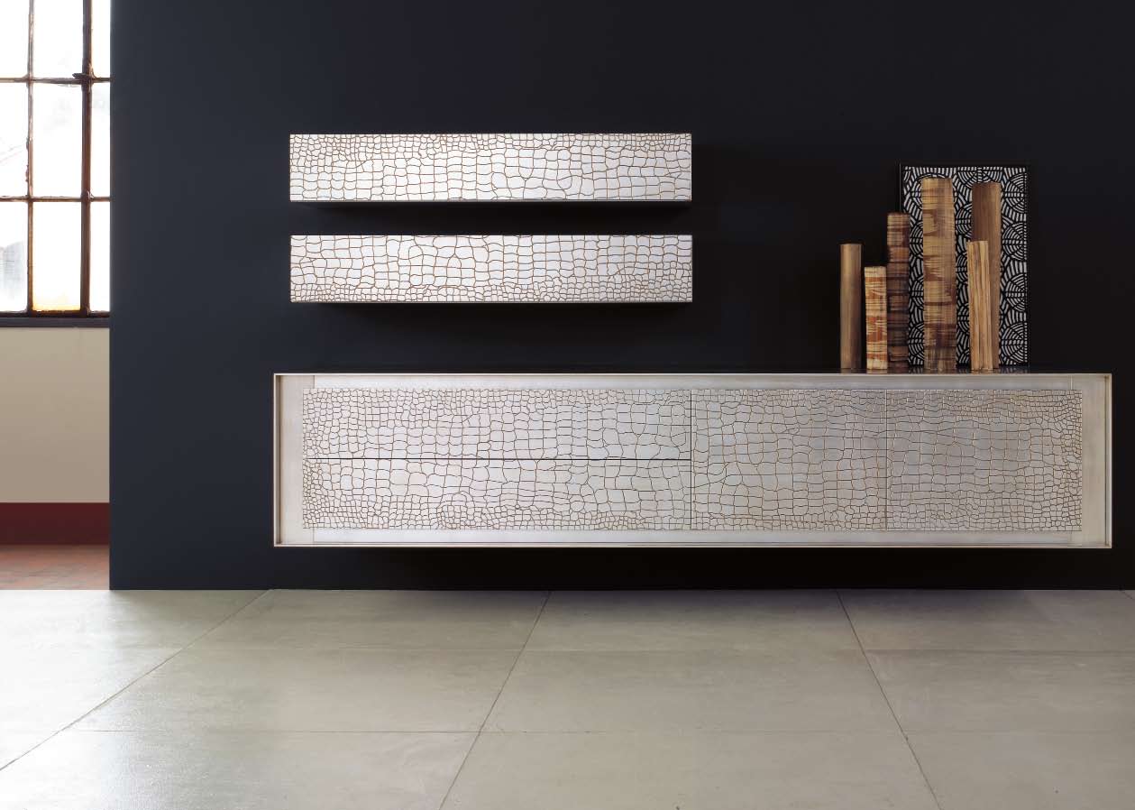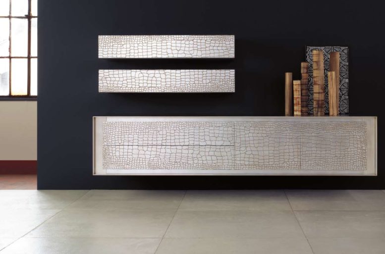 Design e libertà espressiva, creatività ed Artworks nelle collezioni Capo d’Opera, presenti negli show-room di Ballarini Interni di Verona e di Rovereto, che propongono librerie, contenitori dalle diverse combinazioni, mobili bar, arredamenti per la zona notte e il bagno, impreziositi da effetti 3D con motivi naturali o geometrici e rivestimenti con foglia oro, argento e bronzo, colate di resine, abrasioni, incisioni nel legno ma anche nel Corian®.