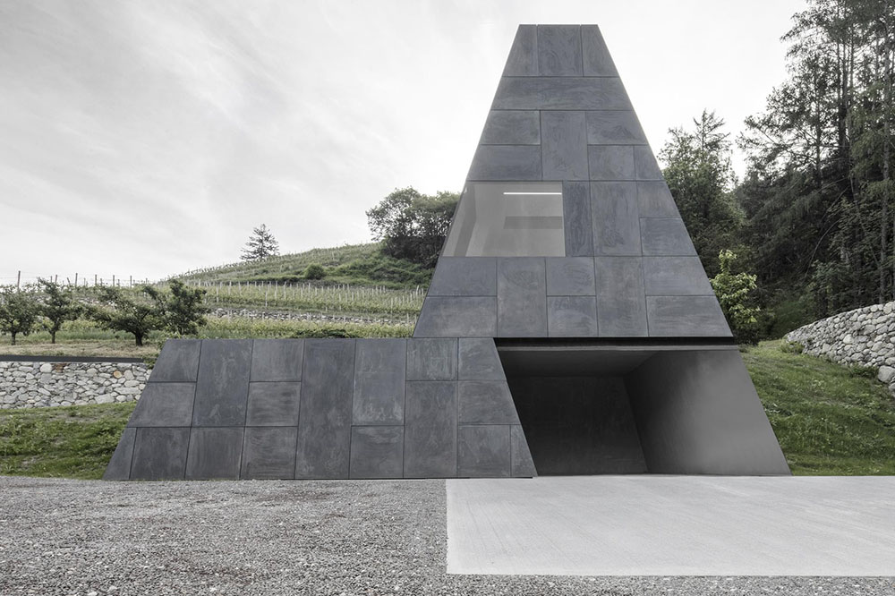 In Novacella, bergmeisterwolf uses burnished bronze to clad the extension of the Pacerhof winery, a material that ages and changes with the passage of time, recalling the changing colors of the stone and the surrounding mountains.