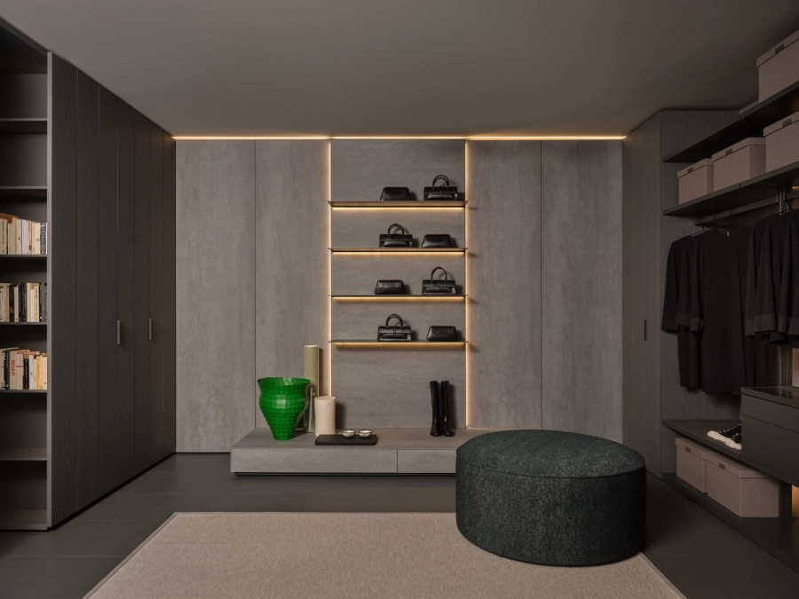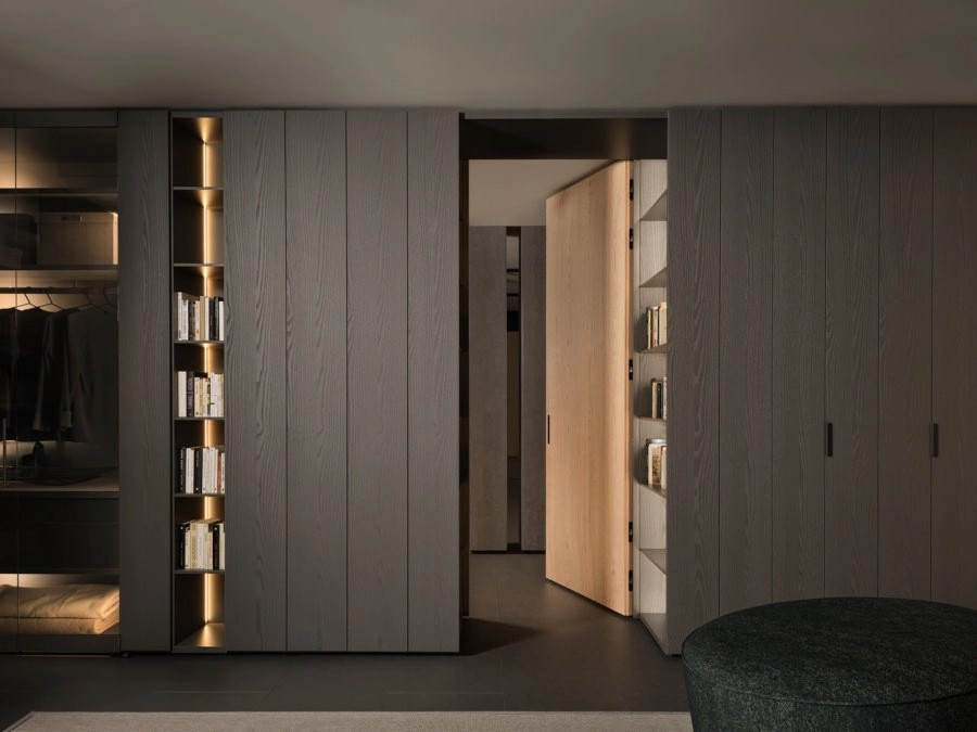 What is the relationship between space and furnishing? How can you create visual continuity between different areas? These questions gave rise to Architype, the integrated system of doors and boiserie that transforms walls into furnishing elements. Architype can either cover surfaces or replace them, integrating with Freedhome storage modules to become an intrinsic part of the home architecture. It represents a new language for interior design, blurring the boundaries between furniture and architecture.