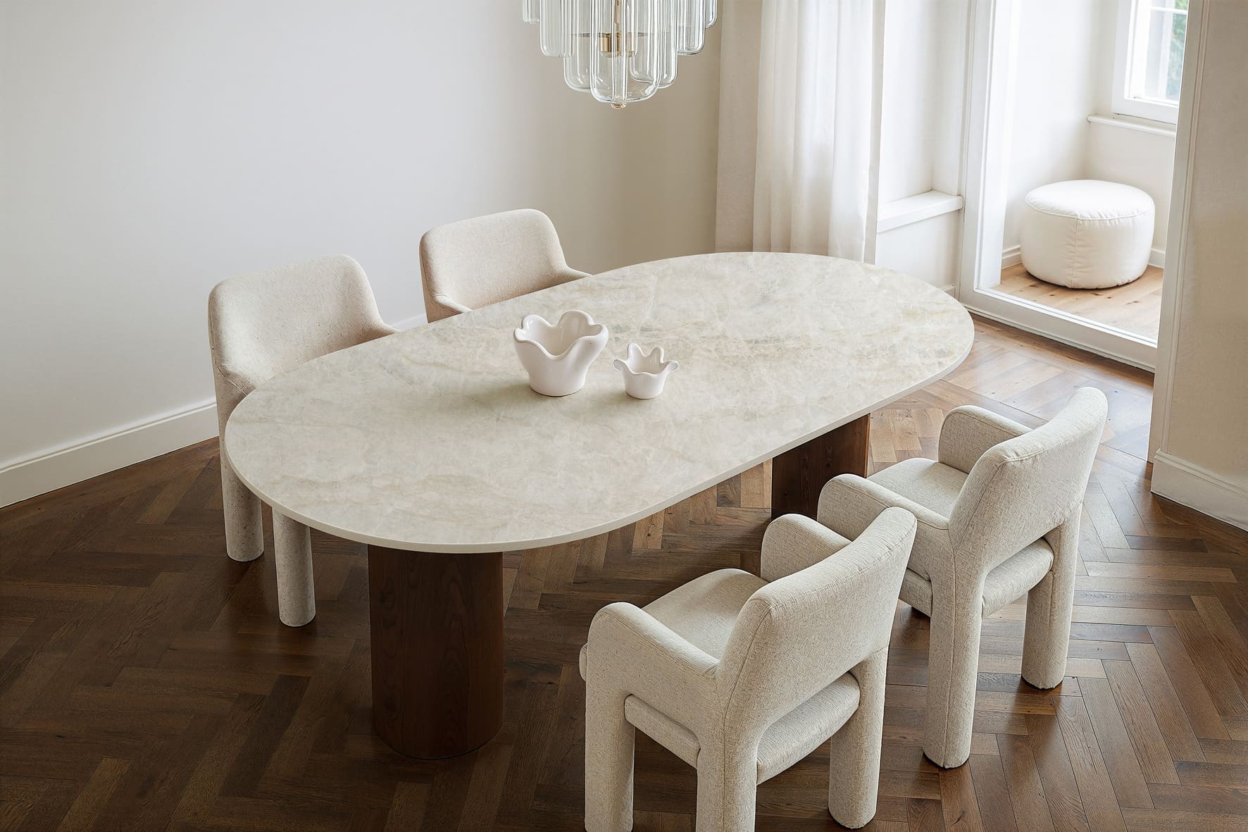 Inspired by calm and natural harmony, Dekton® Nara features a warm and enveloping tone: a delicate beige background crossed by subtle veining that recalls the timeless elegance of Taj Mahal quartzite, reinterpreted in a contemporary way to offer a surface that is both sophisticated and essential.