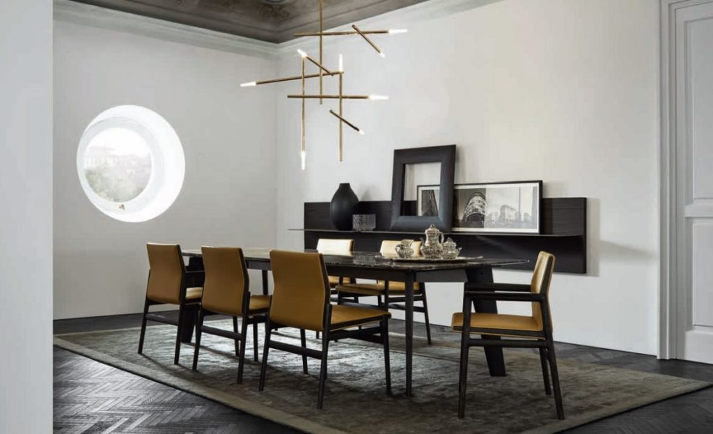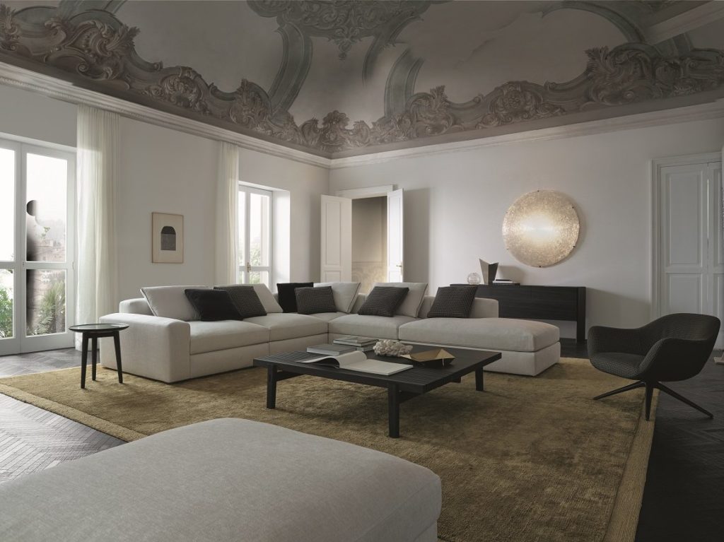 For those who love the classic style but still want a contemporary furnishing. A solution of contrasts between the softness of the ceiling decorative elements and the geometric design furniture. To emphasize the importance of the environment, we will use precious details such as golden surfaces or marble.