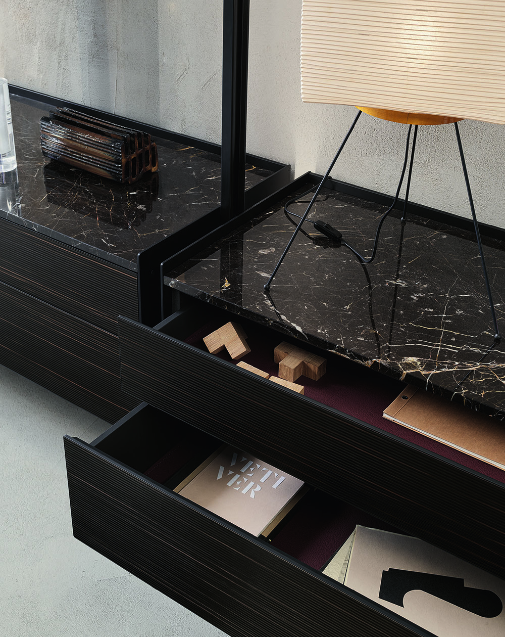 Zenit is a versatile solution perfect for displaying and containing, intended for the home, professional and retail spaces. The variety of finishes allows easy stylistic integration in any environment.