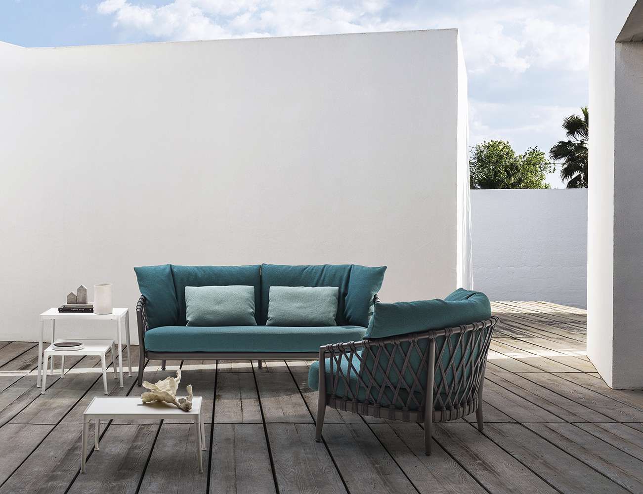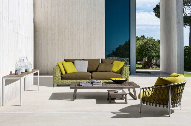 Alla Milano Design Week di quest’anno la proposta di B&B per l’outdoor ha un sapore tutto estivo. Alle tinte tenui e naturali dei materiali per le strutture si affiancano le macchie di colore delle imbottiture: blu oltremare, giallo senape, vinaccia. Il progetto è per un ambiente