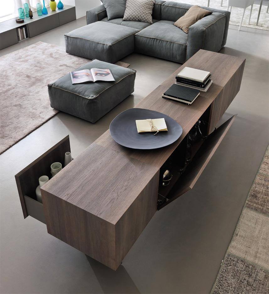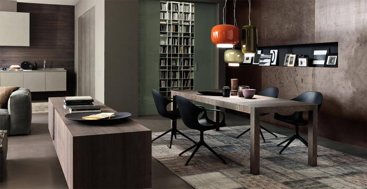 Lo stile tradizionale del tavolo More and Dresser in rovere tinto è reinterpretato con un approccio moderno e viene ulteriormente rafforzato dalla finitura in resina cenere della porta.