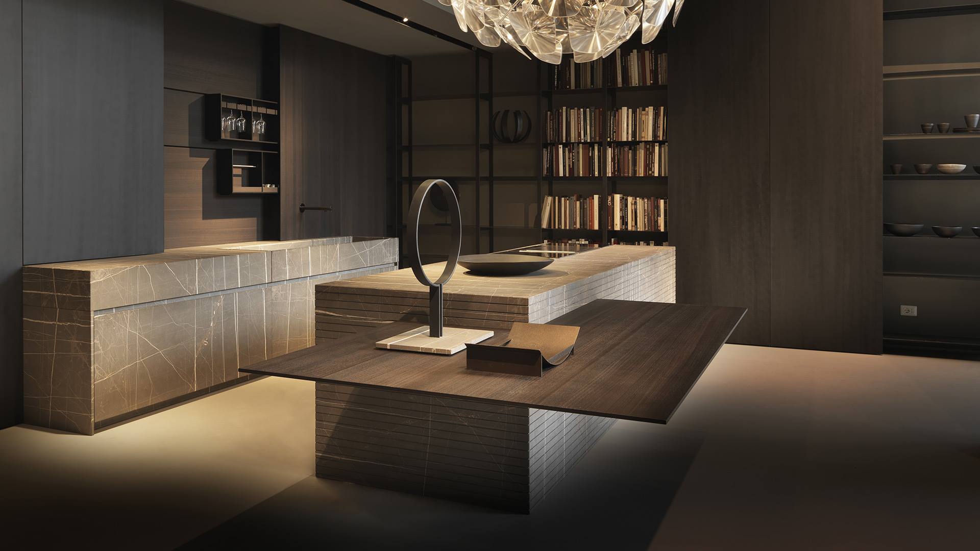 Il design è autentica geometria, un incastro di volumi solidi. La cucina è un oggetto modellato che si integra con le altri parti della casa. La pulizia delle superfici esaltata dalla linearità della forma è adatta per uno spazio funzionale e deciso.