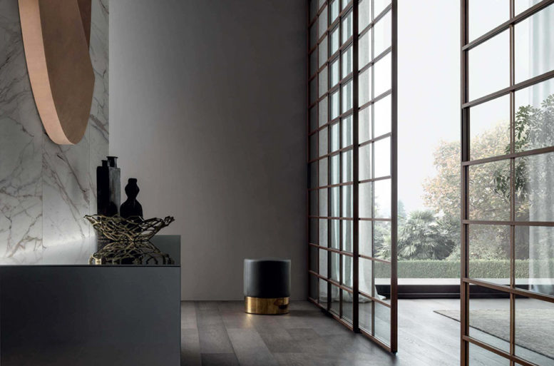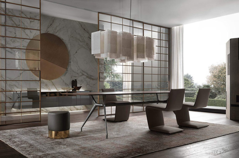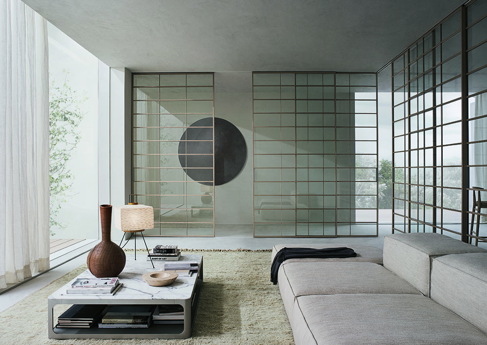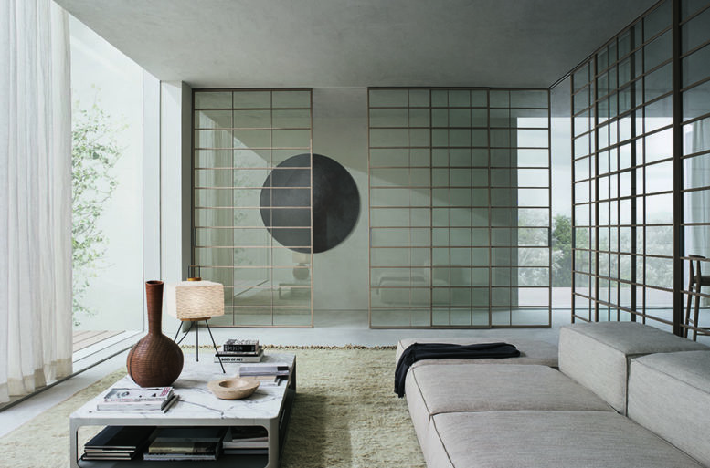 I riferimenti all’estremo oriente sono espliciti in Soho, una collezione che rimanda alla partitura tipica delle pareti mobili e degli arredi che identificano le abitazioni tradizionali giapponesi.
