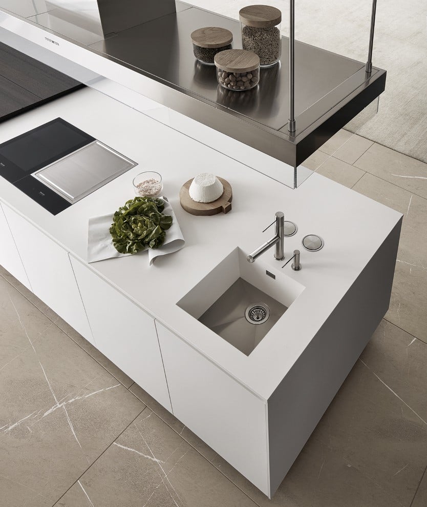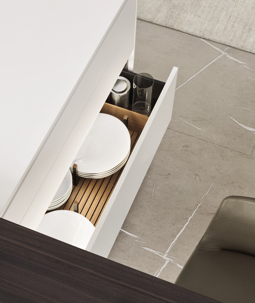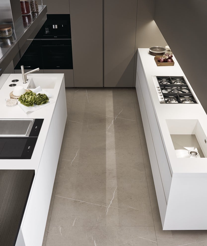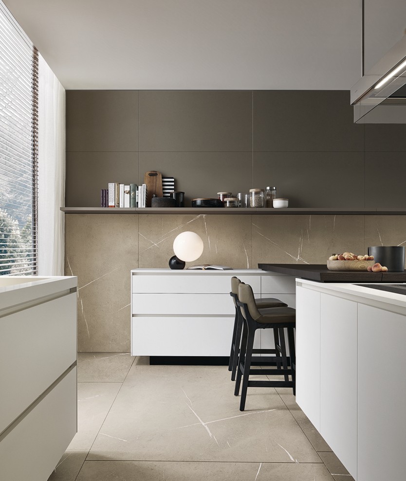 L’apertura a gola e l’ampia varietà di finiture disponibili sono le caratteristiche distintive che rendono l’anta Alea un sistema altamente versatile, capace di soddisfare ogni esigenza compositiva e di personalizzazione. Il design, pur mantenendo una geometria rigorosa e lineare, si esprime attraverso superfici piane e volumi puri, conferendo alla cucina un aspetto elegante e contemporaneo. Alea riesce così a ridefinire l’ambiente cucina, integrando in modo armonioso un’estetica minimalista con un’elevata funzionalità, per un risultato che unisce praticità operativa e raffinatezza visiva.