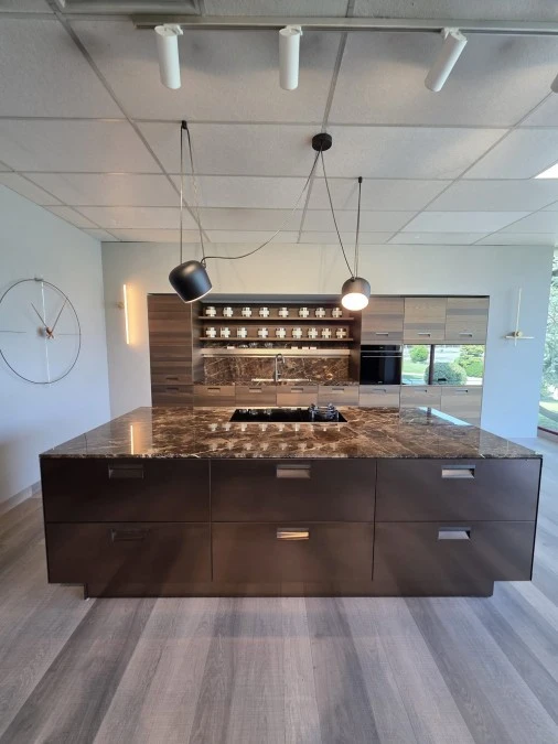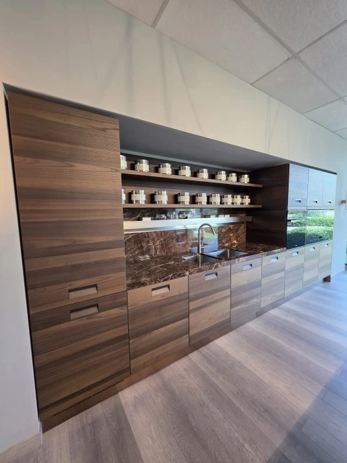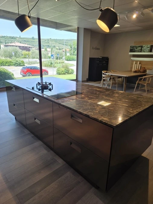 Italia, presentata nel 1988, segna l’inizio della collaborazione con Antonio Citterio, poi art director e designer dell’intera collezione. Anticipando la tendenza di portare in casa le logiche della cucina professionale, Italia ne riprende estetica e soluzioni tecniche: maniglia caratteristica, acciaio predominante, piani profondi, grandi cotture in ghisa, doppio lavello, cappe sospese e layout a doppia isola.