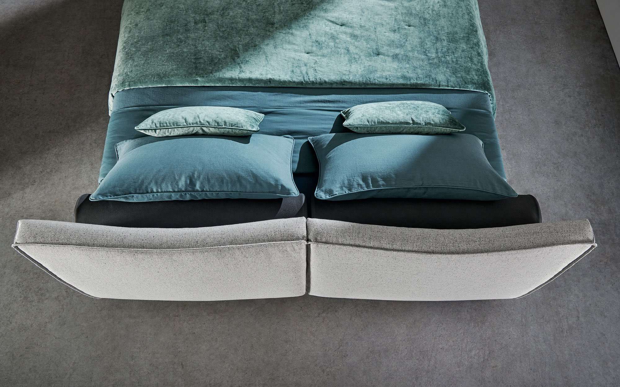 Come ogni letto tessile, Book cambia personalità a seconda del rivestimento: può essere realizzato in una sola variante tessile, selezionata dal nostro campionario, oppure completamente in pelle, per un effetto più deciso e contemporaneo.
