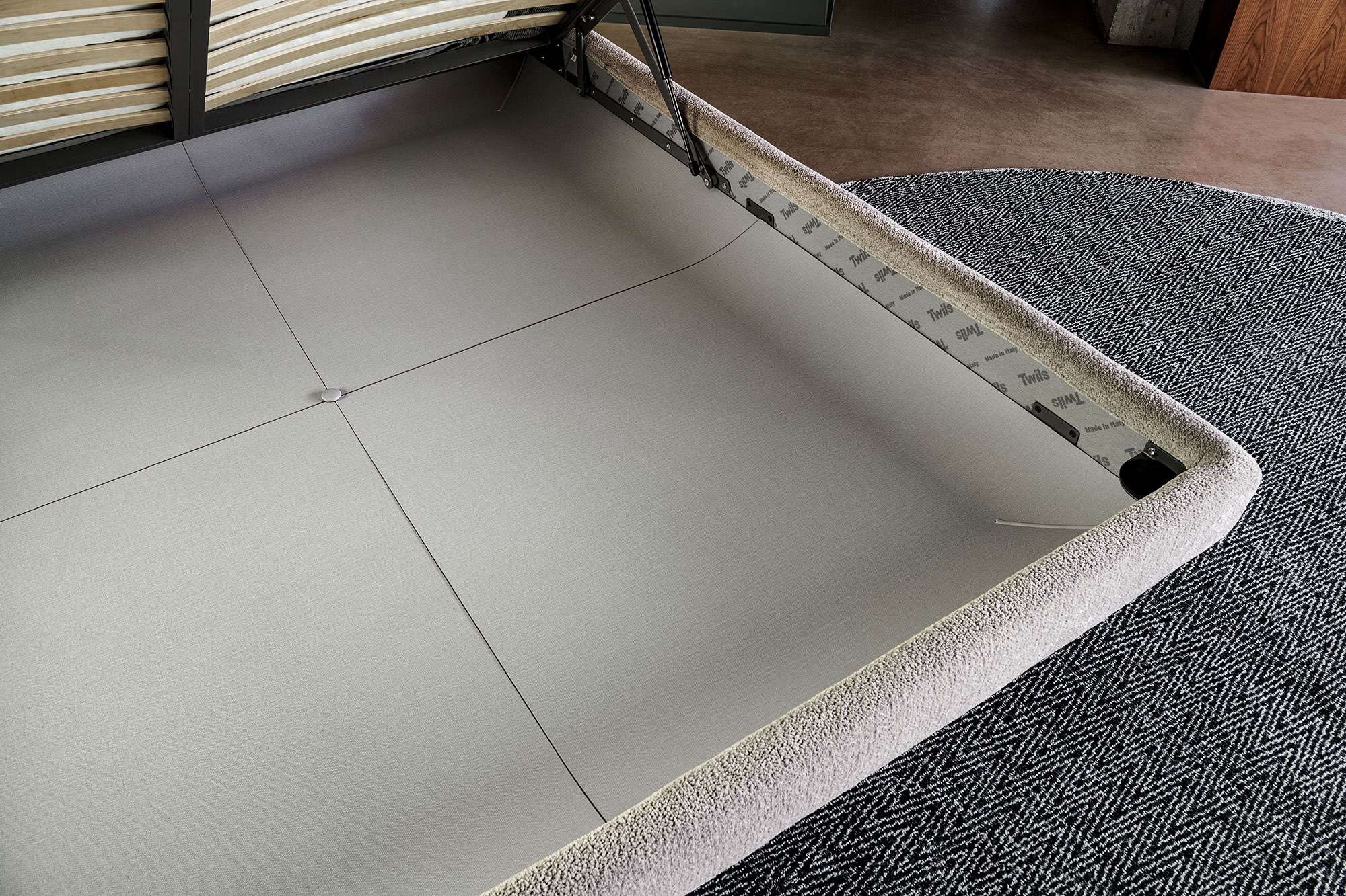 Firmato da Matteo Ragni, Book abbina poesia e praticità: il giroletto, disponibile anche in versione contenitore, offre uno spazio discreto per organizzare, mentre i piedi rettangolari, collocati ai lati, alleggeriscono visivamente il letto e ne sottolineano la purezza delle linee.