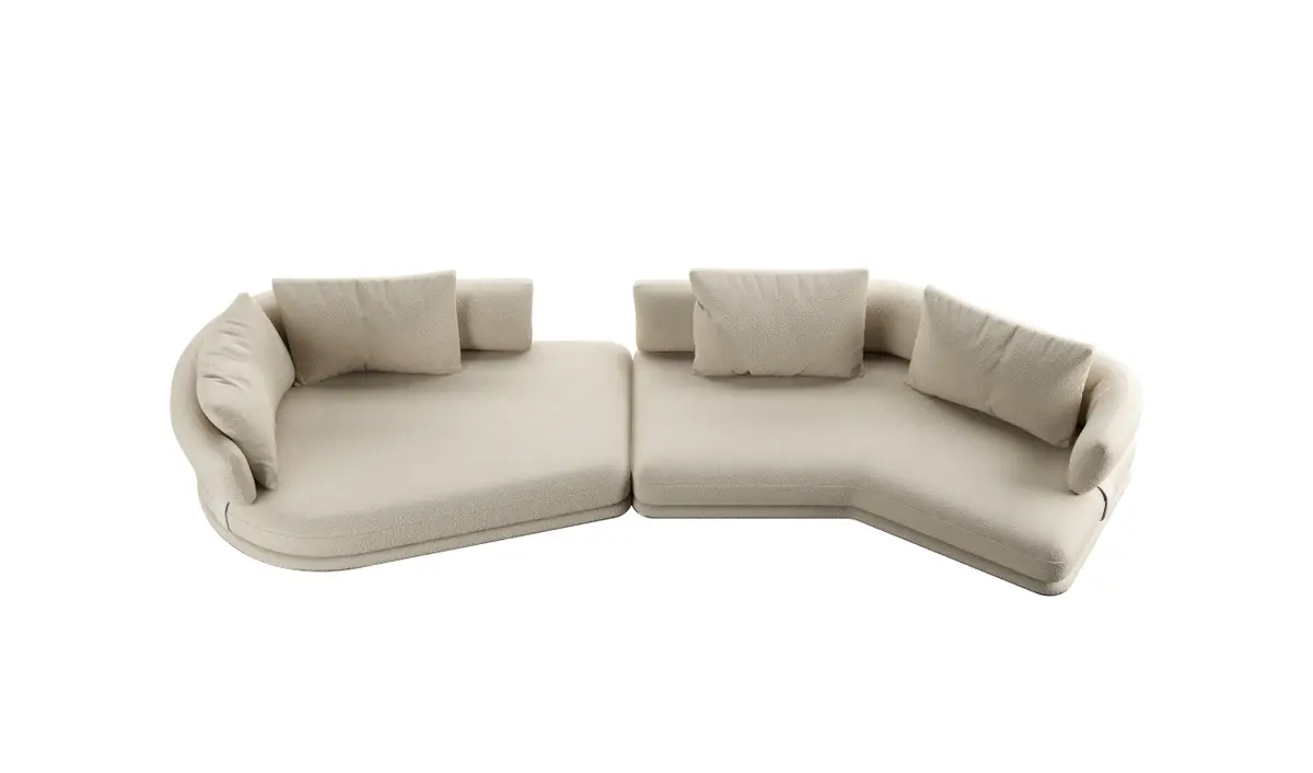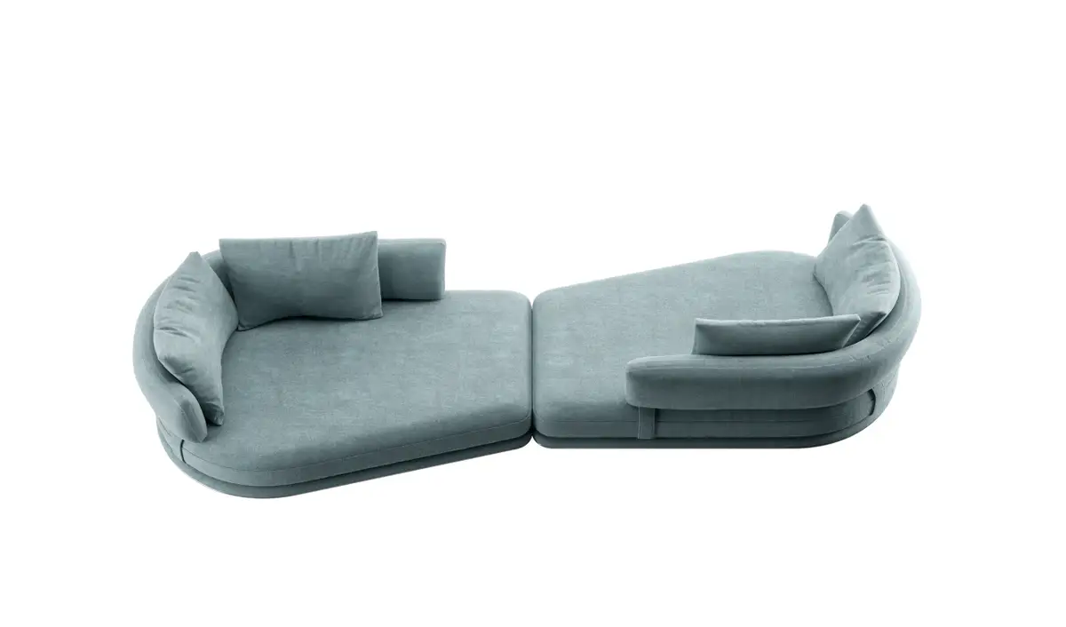 Il sistema si compone di cinque moduli distinti: un rettangolare, due dormeuse curve, una chaise longue e un modulo angolare. Grazie alla loro versatilità, gli elementi possono essere combinati liberamente per creare innumerevoli configurazioni, adattandosi con naturalezza sia a spazi ampi che a ambienti più raccolti.