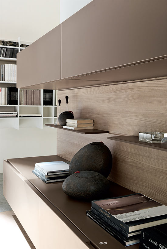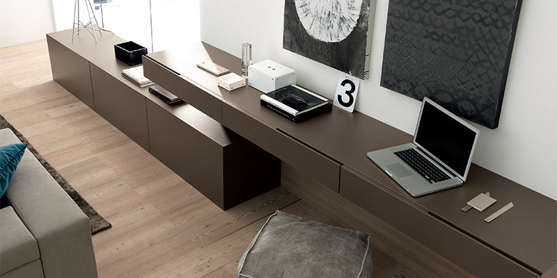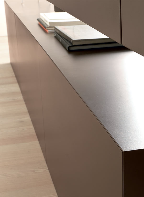 L’armonia delle forme emerge attraverso una cura meticolosa nei dettagli, come la maniglia scavata nel bordo delle ante, che non è solo un elemento funzionale, ma anche un raffinato accento estetico. La grande boiserie, che si integra con la semplicità delle basi, completa il progetto, creando un’atmosfera coesa e raffinata. Gli arredi, disegnati per essere modulari, si combinano perfettamente, delineando gli spazi della casa e separando le diverse zone. Un esempio significativo è la lunga consolle sospesa, con cassetti, che reinventa in chiave moderna il tradizionale scrittoio, offrendo una soluzione pratica ma elegante per l’ambiente domestico.