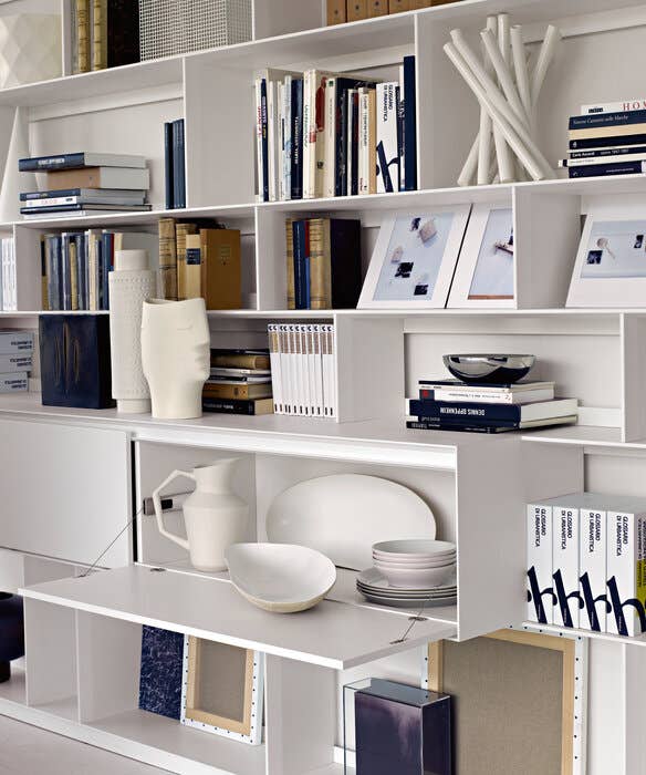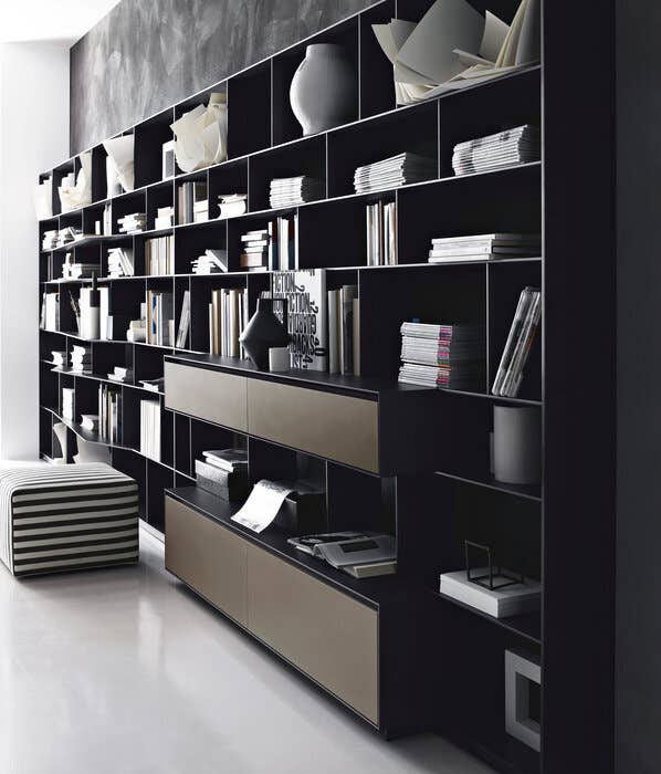 Progettato per accogliere libri, televisori e apparecchi hi-fi nel minimo ingombro, il sistema si distingue per la profondità ridotta a soli 25 cm, per i piani e i fianchi dal profilo sottile e per l’assenza di giunti a vista. Dettagli che trasformano Flat.C in un progetto d’arredo essenziale, versatile ed elegante, capace di integrarsi nell’ambiente senza imporsi, assolvendo con discrezione e rigore alla funzione del contenere.