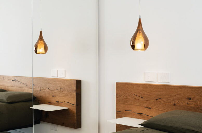 I designer di Ballarini Interni fanno un sapiente uso dei diversi materiali e delle tecniche di arredo, dilatando gli spazi con l’uso delle superfici a specchio dell’armadio CACCARO, la camera da letto guadagna spazio e respiro, nella semplicità delle linee e dei materiali.