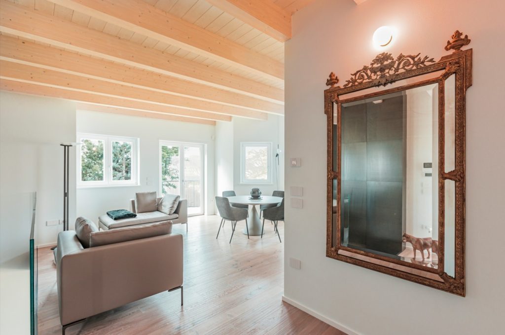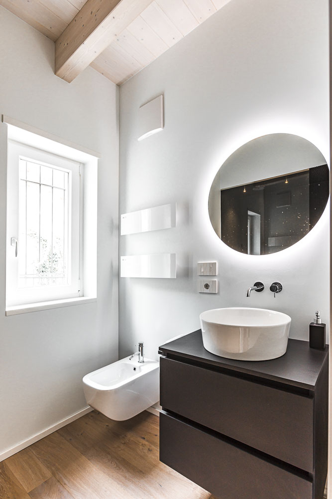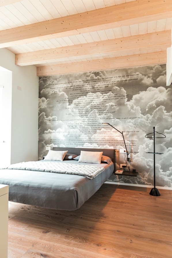 Le camere da letto proseguono il tema dell’originalità e del comfort: il letto Fluttua sembra galleggiare nello spazio, mentre una carta da parati personalizzata trae ispirazione dal libro Alice nel Paese delle Meraviglie, rendendo l’ambiente poetico e coinvolgente. Il bagno Modulnova, con linee pulite e materiali di alta qualità, completa la zona giorno con un tocco di eleganza discreta.
