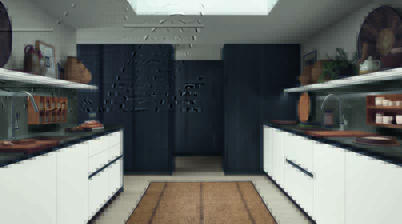 La Wet Kitchen rappresenta la cucina funzionale di servizio, un luogo di lavoro perfettamente attrezzato, ma nello stesso vivibile e fruibile, luminoso e caldo. Il progetto, su tre lati, mette l’accento su spazi e attrezzature.