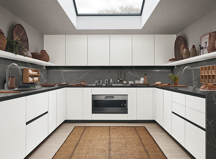 Il nuovo modello di Arclinea firmato Antonio Citterio presenta una visione architettonica dello spazio cucina con dettagli che diventano elementi di stile