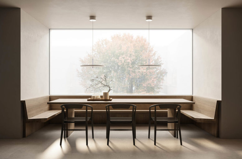 In continuità con l’estetica lineare di Thea, il tavolo da pranzo e la seduta Panca Arclinea, qui nella versione “in nicchia”, creano una relazione armonica tra l’ambiente cucina e la zona dining, e instaurano un dialogo tra le postazioni operative e gli arredi dedicati alla convivialità. Il connubio tra stile e funzionalità rende questo ambiente un luogo di lavoro perfettamente attrezzato, ma anche spazio godibile, caldo e luminoso.